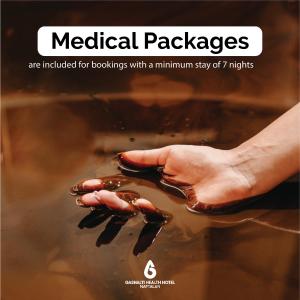 Gashalti Health Hotel offers a variety of medical and wellness treatments, including Naftalan, Iodine-Bromine, Fito Baths, and Physiotherapy sessions. The hotel also provides dermatological treatments, including the above mentioned therapies, as well as specialized therapeutic procedures.