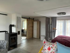 This holiday home features a fireplace. Boasting a private entrance, this holiday home features 1 living room, 1 separate bedroom and 1 bathroom with a walk-in shower. The fully equipped kitchen has a stovetop, a refrigerator, a dishwasher and kitchenware. Featuring a terrace with garden views, this holiday home also features a coffee machine and a flat-screen TV with satellite channels. The unit has 1 bed.