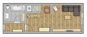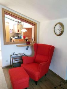Das Apartment gemütliche und gleichwohl zweckmässig eingerichtete kleine Wohnung ist mit Kabel-TV ausgestattet. Die Küchenzeile im gemütliche und gleichwohl zweckmässig eingerichtete kleine Wohnung umfasst Kühlschrank, Ofen, Mikrowelle, Kaffeemaschine und Wasserkocher.