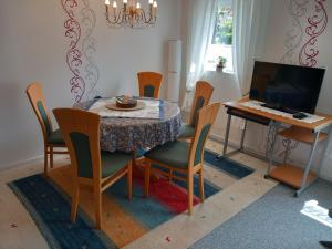 Apartament mieści dwie sypialnie, salon, łazienkę z prysznicem i suszarką oraz kuchnię z lodówką i ekspresem. Wyposażenie obiektu Gemütliche 3 Zimmer-Ferienwohnung obejmuje telewizor z płaskim ekranem.