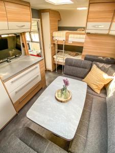 This mobile home's standout feature is the sauna. This air-conditioned mobile home is comprised of 1 living room, 1 separate bedroom and 1 bathroom with a shower. Guests will find a stovetop, a refrigerator, kitchenware and a toaster in the well-equipped kitchen. The mobile home also has a barbecue. This mobile home features a washing machine, a coffee machine, a TV with satellite channels and a terrace. The unit offers 4 beds.