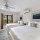 Questo appartamento comprende 2 camere da letto, 2 bagni, lenzuola, asciugamani, una TV a schermo piatto con canali satellitari, una zona pranzo, una cucina con utensili e un patio con vista sul mare.