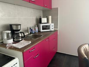 The apartment's kitchen is available for cooking and storing food. A sofa, a flat-screen TV, a wardrobe and heating are offered in this spacious apartment. The unit has 4 beds.
