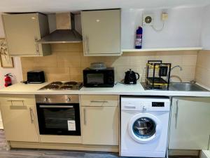 Apartmán GH Basingkstoke - Local Apartment for 5 guests má 3 ložnice, TV s plochou obrazovkou a kuchyň.