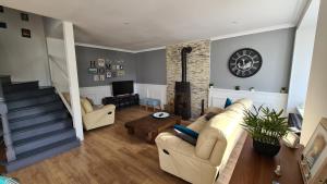 The sauna and fireplace are the standout features of this holiday home. Guests will find a stovetop, a refrigerator, a dishwasher and an oven in the kitchen. The holiday home also provides guests with a barbecue. The spacious holiday home provides a washing machine, a private entrance, a tea and coffee maker as well as a terrace with garden views. The unit offers 11 beds.