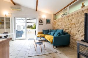 Boasting a private entrance, this air-conditioned holiday home includes 1 living room, 1 separate bedroom and 1 bathroom with a hairdryer. In the kitchen, guests will find a stovetop, a refrigerator, kitchenware and an oven. The holiday home offers a TV with satellite channels, a washing machine, a coffee machine, a barbecue as well as garden views. V této ubytovací jednotce se nachází 3 postele.