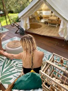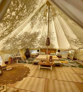 Featuring free toiletries and bathrobes, this tent includes a private bathroom with a shower, a bidet and a hairdryer. The kitchen features a stovetop, a refrigerator and kitchenware. The tent features a private entrance, a tea and coffee maker, a seating area as well as a terrace with garden views. The unit has 1 bed.