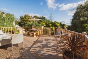 Tento prázdninový dům má 4 ložnice, 2 koupelny, ložní prádlo, ručníky, TV, jídelní část a kuchyň s kompletním vybavením. Ubytování Glastonbury, large House Stunning views 2 to 5 bedrooms, 3 receptions turn into bedrooms nabízí také terasu s výhledem do zahrady. Koupelna v ubytování disponuje sprchou, pračkou, fénem a toaletními potřebami zdarma.