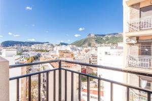 Questo appartamento ha 2 camere da letto, 1 bagno, lenzuola, asciugamani, una TV con canali satellitari, una cucina con utensili e un balcone con la vista sul mare.