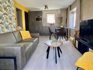 Apartament w obiekcie posiada taras, 2 sypialnie, salon, wyposażoną kuchnię oraz 2 łazienki z wanną i prysznicem. Z obiektu Glücklich am Meer Meerblick mit Wellnesszugang roztacza się widok na morze. Goście obiektu mają do dyspozycji telewizor z płaskim ekranem i kanałami satelitarnymi. Ręczniki i pościel są dostępne w apartamencie.