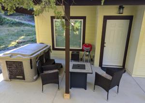 Guests will have a special experience as the holiday home features a hot tub. Featuring a private entrance, this air-conditioned holiday home consists of a kitchen, 1 bedroom and 1 bathroom with a shower and a hairdryer. Guests will find a stovetop, a refrigerator, a dishwasher and kitchenware in the well-equipped kitchen. The holiday home also offers a barbecue. Boasting a patio, this holiday home also provides a washing machine, a tea and coffee maker and a flat-screen TV with streaming services. V této ubytovací jednotce je k dispozici 1 postel.