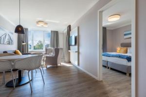 Godewindpark Deluxe-Suite 2-13 se nachází v destinaci Travemünde a poskytuje volný vstup do sauny. Pláž Travemünde Strand se nachází 600 metrů odtud. Ubytování Godewindpark Deluxe-Suite 2-13 poskytuje hostům balkon, bezplatné Wi-Fi a parkování zdarma.
