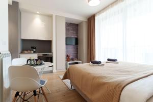 Apartmán ubytování nabízí 1 ložnici, 1 koupelnu, ložní prádlo, ručníky, TV s plochou obrazovkou, plně vybavenou kuchyň a terasu s výhledem na město. Koupelna v Gold Luxury Suite-Belgrade Waterfront disponuje sprchou, pračkou, fénem a toaletními potřebami zdarma.