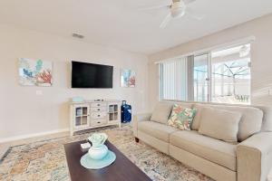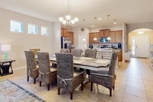 Das klimatisierte Ferienhaus Golden Hour Haven bietet 4 Schlafzimmer, ein Wohnzimmer, eine Küche mit Kühlschrank und Kaffeemaschine sowie 3 Bäder mit Dusche und Pflegeprodukten. In diesem Ferienhaus werden Handtücher und Bettwäsche angeboten.