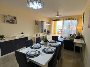 The spacious apartment with a terrace and sea views features 2 bedrooms, a living room, a flat-screen TV, an equipped kitchen with a dishwasher and an oven, and 2 bathrooms with a hot tub. Towels and bed linen are provided at Golf, Relax and Explore Apartment. For added privacy, the property features a private entrance and full-day security.
