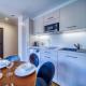 Diese Ferienwohnung mit Klimaanlage besteht aus 1 Schlafzimmer, einem Wohnzimmer, einer voll ausgestatteten Küche mit einem Kühlschrank und einer Kaffeemaschine sowie 1 Badezimmer mit einer Dusche und einem Haartrockner. Es gibt einen TV.
