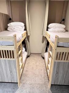 Postel ve společném pokoji s klimatizací a zvukovou izolací.