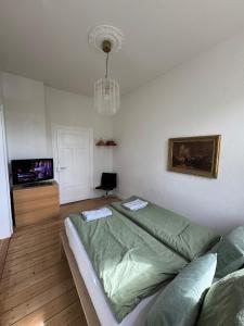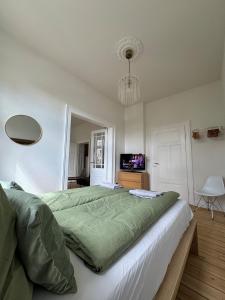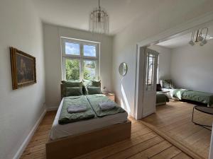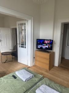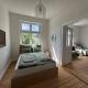 Au Grand Apartment Worms - Stilvolles Wohnen im Zentrum, cet appartement offre 2 chambres, 1 salle de bains, du linge de maison, une TV écran plat, un coin repas, une cuisine équipée et une terrasse avec vue sur le jardin.