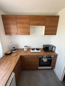 Zur Einrichtung des Grand F3, proche gare Auxerre gehören ein Schlafzimmer, ein Flachbild-TV und eine Küche.