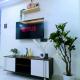 Apartmán Green Canopy Lake view 2 BHK in Powai zahrnuje 1 ložnici, TV s plochou obrazovkou a kuchyň.