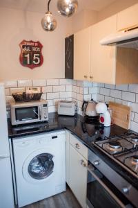 This holiday home offers a fireplace. Featuring a private entrance, this holiday home also comprises 2 bedrooms, a seating area and 1 bathroom with a bath and a shower. The well-equipped kitchen features a stovetop, a refrigerator, a dishwasher and kitchenware. The holiday home provides a flat-screen TV with streaming services, a washing machine, a dining area, a wardrobe as well as garden views. The unit offers 2 beds.