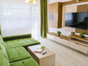 The apartment features 2 bedrooms and 1 bathroom with a bath and free toiletries. Meals can be prepared in the kitchen, which comes with a stovetop, a refrigerator, kitchenware and an oven. Featuring a balcony with mountain views, this apartment also provides a washing machine and a flat-screen TV with streaming services. V této ubytovací jednotce je k dispozici 2 postele.