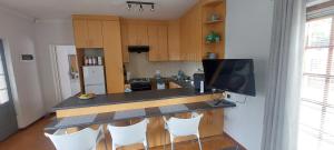 Apartmán ubytování zahrnuje 1 ložnici, 1 koupelnu, ložní prádlo, ručníky, TV s plochou obrazovkou, jídelní kout a plně vybavenou kuchyň. Z balkonu ubytování Grey-door cottage Number1 se otevírá výhled do zahrady. V koupelně ubytování ubytování nechybí sprcha ani fén.