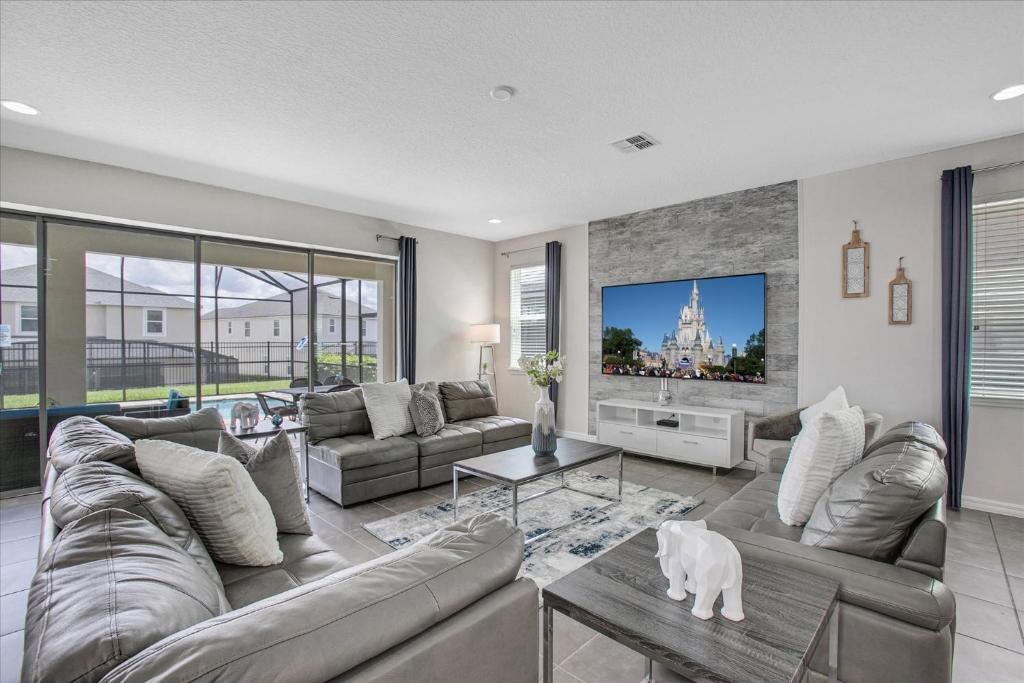 Boasting air-conditioned accommodation with a private pool, GRH14684 - Solara Resort - 6 Bed 4.5 Baths Villa is situated in Kissimmee. Both free WiFi and on-site parking are accessible free of charge at the villa in the property. Guests have access to a hot tub and fitness centre.