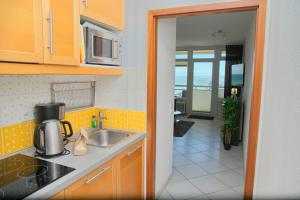 Apartmán Grömitz- Center II App 37 inkl WLAN se skládá z 1 ložnice, obývacího pokoje, plně vybavené kuchyně s lednicí a mikrovlnnou troubou a 1 koupelnu. Koupelna je vybavená sprchou.
