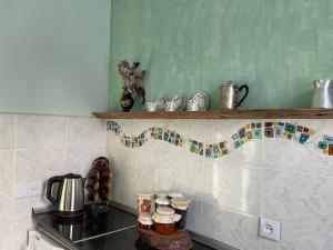 Guests will find a stovetop, a refrigerator and kitchenware in the kitchenette. The holiday home also features a barbecue. The holiday home has a washing machine, a private entrance, a tea and coffee maker as well as a terrace with garden views. The unit has 2 beds.
