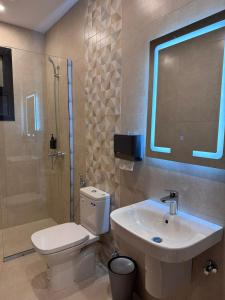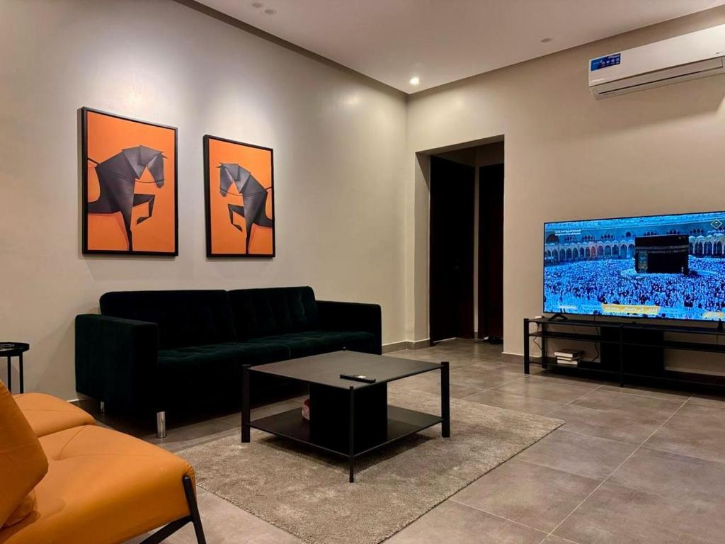 This spacious apartment is comprised of 1 living room, 2 separate bedrooms and 2 bathrooms with a shower and free toiletries. Guests can make meals in the kitchen that is fitted with a stovetop, a refrigerator, kitchenware and a microwave. The apartment features carpeted floors, a seating area with a flat-screen TV with streaming services, air conditioning, soundproof walls, as well as an electric kettle. The unit provides 3 beds.