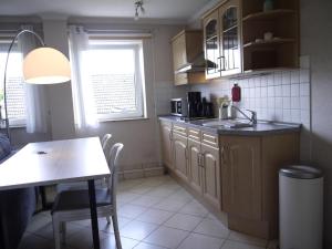 Apartmán Haffliebe 2 nabízí 1 ložnici, 1 koupelnu, ložní prádlo, ručníky, kabelovou TV s plochou obrazovkou, jídelní kout a plně vybavený kuchyňský kout. Ubytování ubytování nabízí také terasu s výhledem do zahrady. V koupelně ubytování ubytování nechybí sprcha ani fén.
