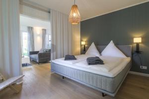 Apartmán ubytování zahrnuje 1 ložnici, plně vybavenou kuchyň s lednicí a myčkou a 1 koupelnu se sprchou. V apartmánu Haffperle - Meerblau nechybí TV a koupelna s fénem.
