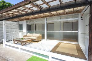 The air-conditioned holiday home has 2 bedrooms and 1 bathroom with a bath and a shower. Guests will find a refrigerator, kitchenware, a microwave and a tea and coffee maker in the well-equipped kitchen. The holiday home also comes with a barbecue. This holiday home features a washing machine, tatami, a TV with streaming services and a terrace. The unit has 2 beds and 3 futons.