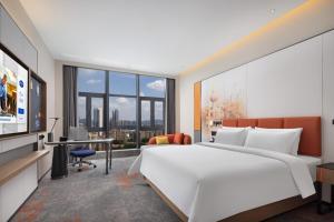 The spacious double room offers air conditioning, soundproof walls, as well as a private bathroom featuring a shower and a hairdryer. The double room provides a wardrobe, an electric kettle, a sofa, a flat-screen TV, as well as city views. The unit provides 1 bed.