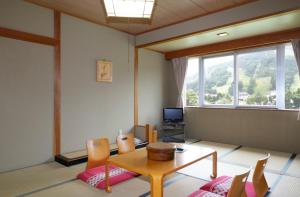 Cosy room featuring twin beds, a seating area and a TV. It’s fitted with air conditioning, heating and an attached bathroom. Yukata robes and green tea are provided.