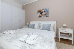 Questo appartamento con aria condizionata comprende 1 camera da letto, un soggiorno, una cucina con utensili, frigorifero e bollitore elettrico, e 1 bagno con vasca o doccia e set di cortesia. Asciugamani e lenzuola sono inclusi nei servizi di Happy Apartments Mostar.