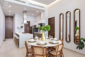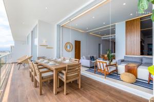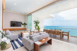 This spacious apartment consists of 3 bedrooms, kitchen, a terrace and 3 bathrooms with a shower. Guests can make meals in the kitchen that is equipped with a stovetop, a refrigerator, a dishwasher and kitchenware. The air-conditioned apartment provides a TV, a washing machine, a coffee machine, a sofa as well as sea views. The unit offers 4 beds.