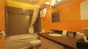 Simply furnished room offers a flat-screen TV, refrigerator and microwave. The private bathroom includes a hairdryer and toiletries.