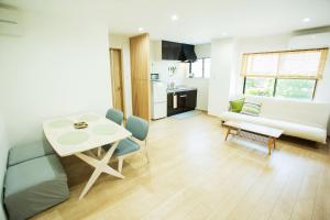 Featuring a private entrance, this air-conditioned apartment comprises 1 living room, 3 separate bedrooms and 1 bathroom with a bath and a shower. Meals can be prepared in the well-fitted kitchen, which comes with a stovetop, a refrigerator, kitchenware and a microwave. The spacious apartment provides tatami, a tea and coffee maker, a wardrobe, a flat-screen TV, as well as a quiet street view. The unit offers 3 beds and 5 futons.