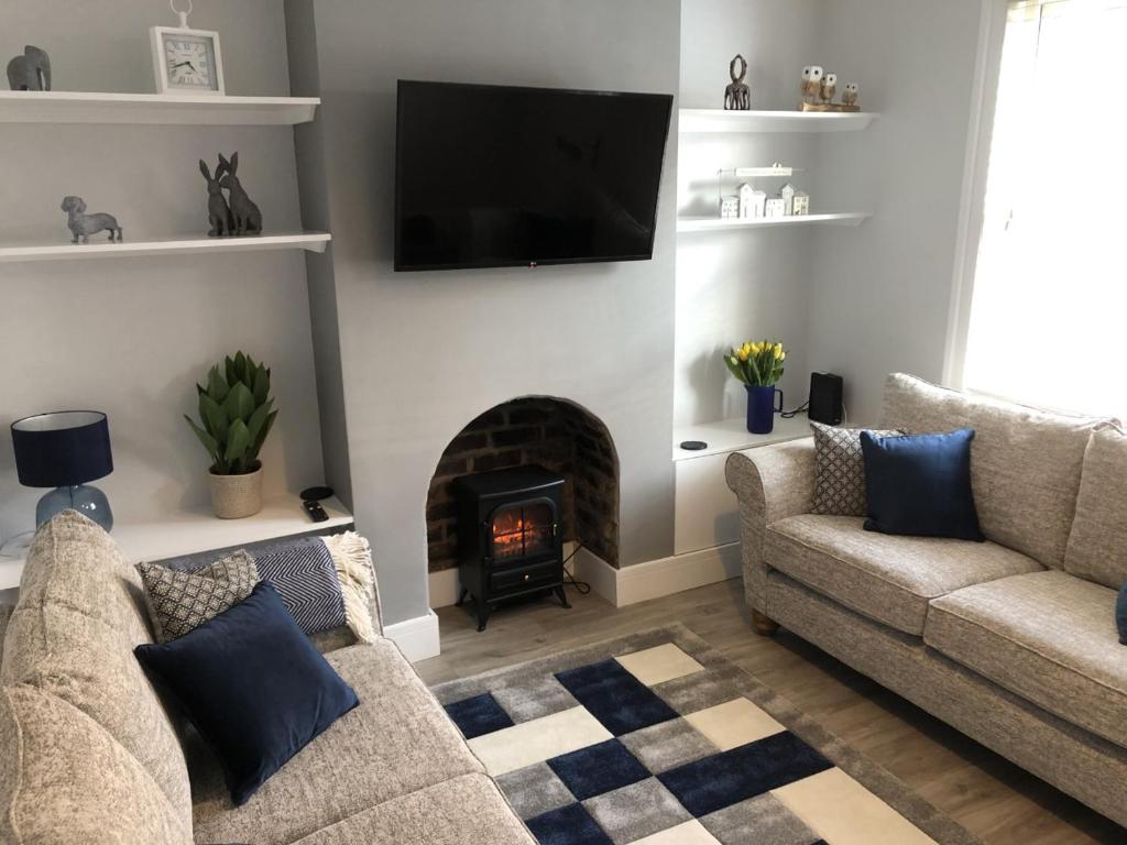 V prázdninovém domě Hattie's Cottage jsou 2 ložnice, 1 koupelna, kabelová TV, jídelní kout, plně vybavená kuchyň, ručníky a ložní prádlo. Ubytování Hattie's Cottage nabízí také terasu s výhledem do zahrady. Koupelna v ubytování disponuje sprchou, pračkou, fénem a toaletními potřebami zdarma.