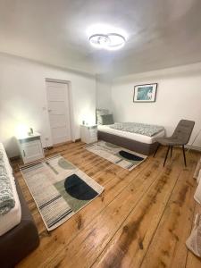 The apartment features 3 bedrooms, 1 bathroom and a kitchen. The apartment's kitchen is available for cooking and storing food. The spacious apartment provides a flat-screen TV, a washing machine, a coffee machine, heating as well as garden views. The unit offers 7 beds.