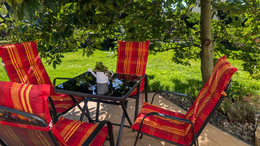 Featuring a private entrance, this apartment is comprised of 1 living room, 1 separate bedroom and 1 bathroom with a walk-in shower and a hairdryer. Guests will find a stovetop, a refrigerator, a dishwasher and kitchenware in the fully equipped kitchen. The apartment also has a barbecue. Boasting a terrace with garden views, this apartment also offers a washing machine and a flat-screen TV with streaming services. The unit offers 2 beds.