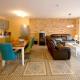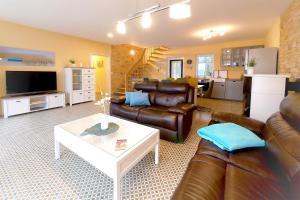 Dieses Ferienhaus besteht aus 2 Schlafzimmern, einem Wohnzimmer, einer voll ausgestatteten Küchenzeile mit einem Kühlschrank und einer Kaffeemaschine sowie 2 Badezimmern mit einer Dusche und einer Badewanne. Es gibt einen Flachbild-TV.