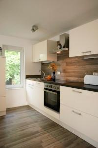 Questo appartamento con terrazza e vista sul giardino offre 2 camere da letto, un soggiorno, una TV a schermo piatto, una cucina con frigorifero e lavastoviglie e 1 bagno con vasca da bagno. Haus 8 am Grimnitzsee mit Sauna fornisce lenzuola e asciugamani ai propri ospiti.