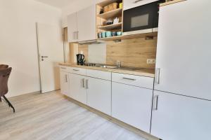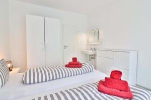 Dwupokojowy apartament Haus am Rosengarten - Robbe posiada kuchnię z lodówką i zmywarką oraz łazienkę z prysznicem, pralką i suszarką. Ręczniki i pościel są dostępne w apartamencie Haus am Rosengarten - Robbe.