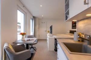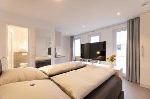 W apartamencie zapewniono sypialnię (1) oraz aneks kuchenny z lodówką, zmywarką i ekspresem do kawy. Ręczniki i pościel są dostępne w apartamencie Haus Andersen Apartment DREI.