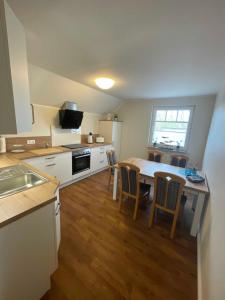 The apartment has 2 bedrooms, a TV, a fully equipped kitchen with an oven and a fridge, and 1 bathroom with a shower. Towels and bed linen are offered at Haus Landruhe.