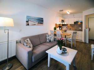 The apartment with a balcony and inner courtyard views features 1 bedroom, a living room, a flat-screen TV, an equipped kitchenette with a dishwasher and a microwave, and 1 bathroom with a walk-in shower. Guests at Haus Meeresblick - Ferienwohnung Albatros (Ref. 152813) can enjoy the surroundings from the outdoor dining area. For added privacy, the property features a private entrance.
