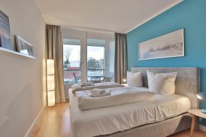 L'appartamento di Haus Meeresstrand Appartement 116, con balcone vista mare, offre 1 camera da letto, soggiorno, TV, cucina con frigo e lavastoviglie e 1 bagno con doccia.
